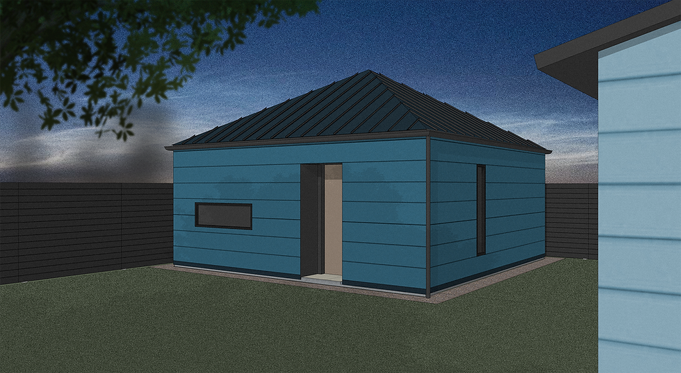 On a 50’ x 100’ Portland city lot, the client wished to demo their old, unusable shed in order to build a contemporary box used for living and housing art.